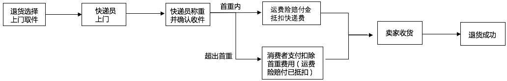 · 当消费者退货选择上门取件服务,快递员上门取件成功并且线支付运费,则运费险赔付即时抵扣首重运费(超过首重则减免首重金额),消费者无需等待,退货当日即可获得运费险赔付。